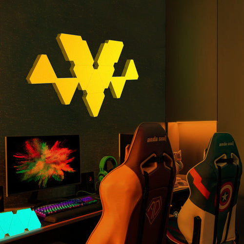 [Smart APP & Voice Control]: Led triangle wall lights can be controlled by Alexa, Google Assistant, Stream Deck, Razer synapse 3. DIY lighting effect, light color, color-changing speed, available in Cololight APP. Hands-free turning on/off, daily scheduling, changing colors and setting brightness anywhere anytime via a smart device.